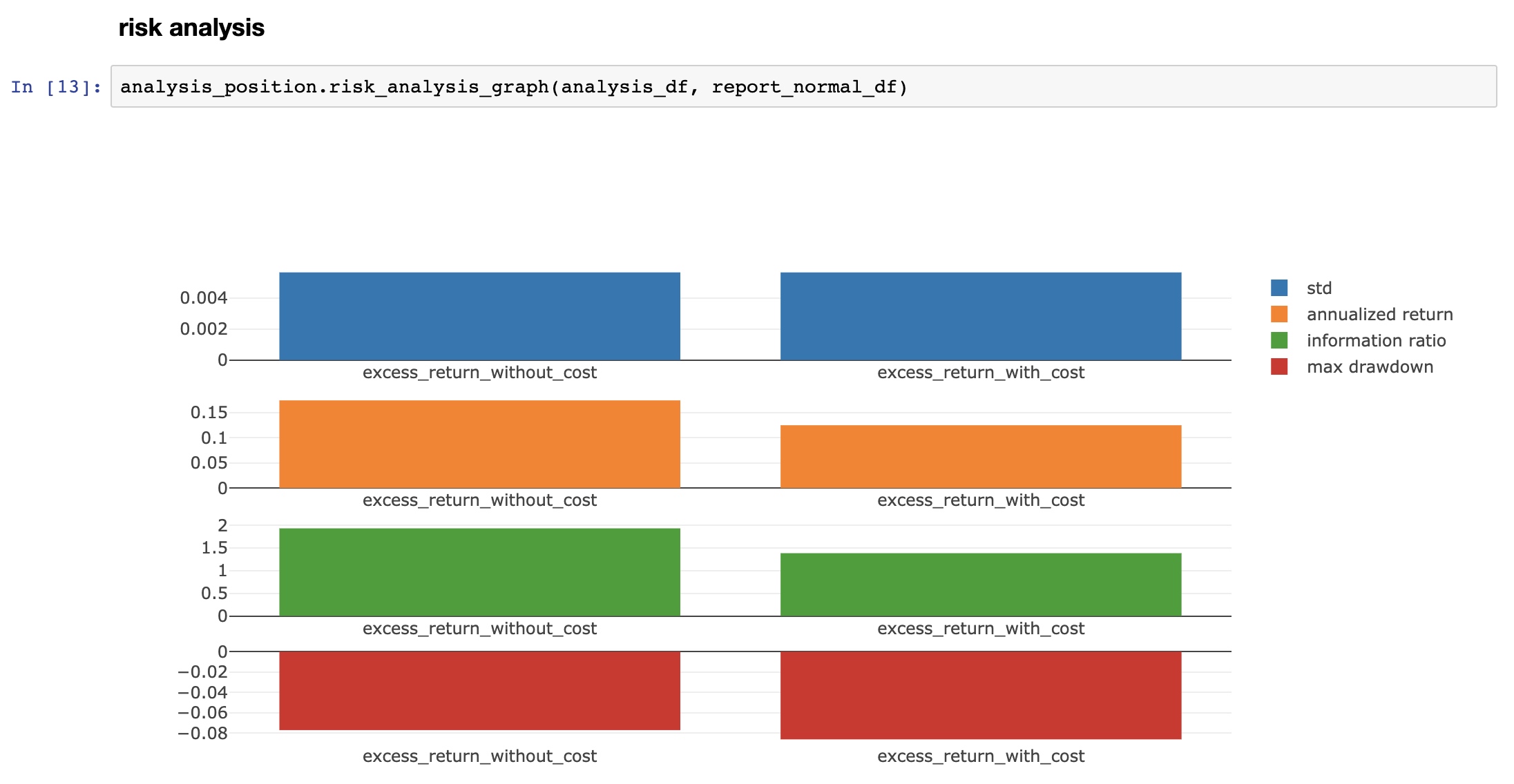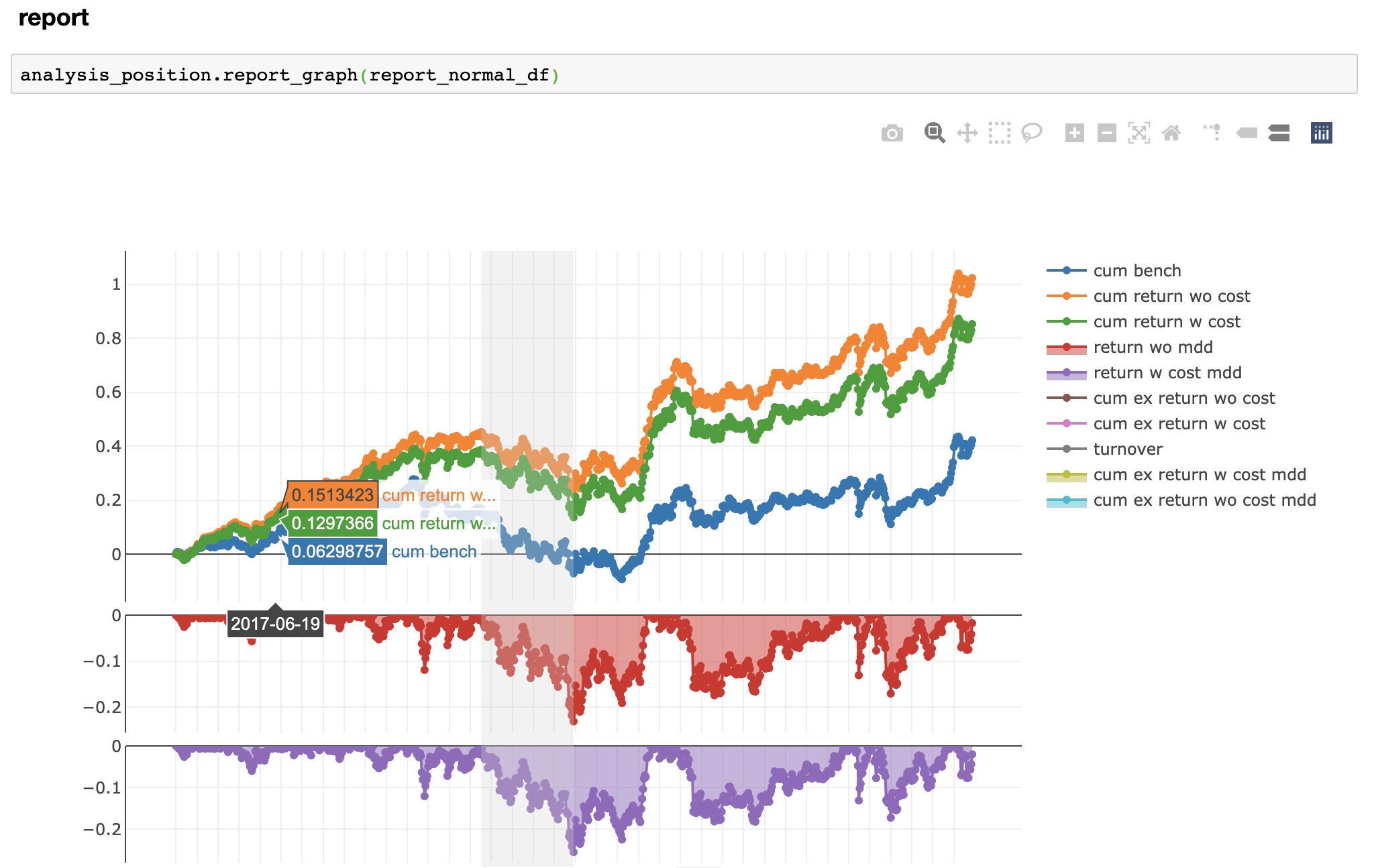 可以看到,模型建立、执行、预测等全部内容都已经准备好了,我们只需要按照顺序执行一遍,就能看到更丰富的报告,比如回测、回报率、信息指数等👇