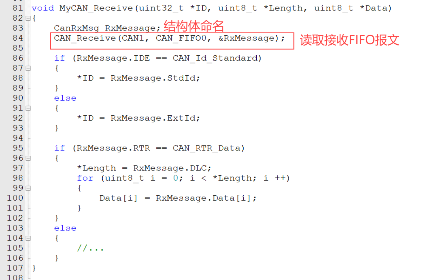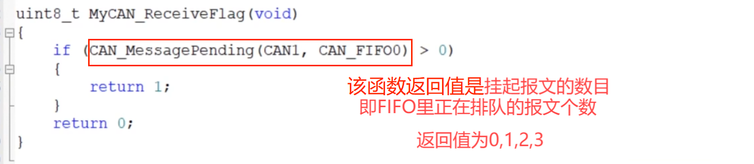 需要两个函数,一个判断接收FIFO里是否有报文,另一个读取接收FIFO,把报文内容取出来