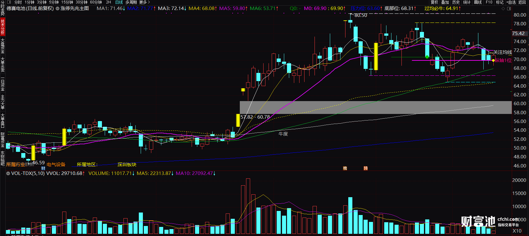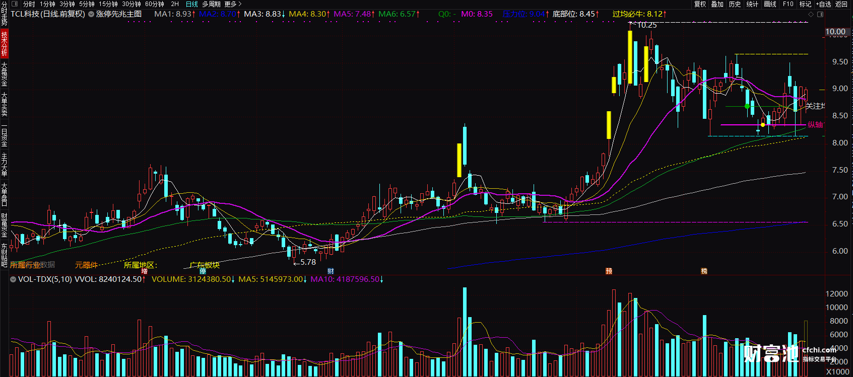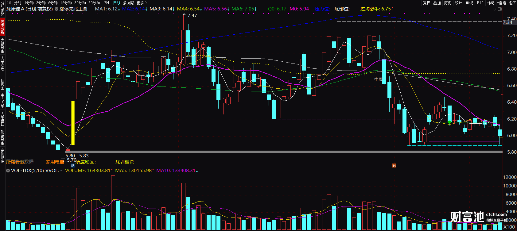 涨停先兆主图指标在运用上,如果当日K线上主图指标出现了黄色方块的买入信号后,我们可以结合量价趋势,则可以大胆的全仓介入,坐等着主力拉升就可以了。