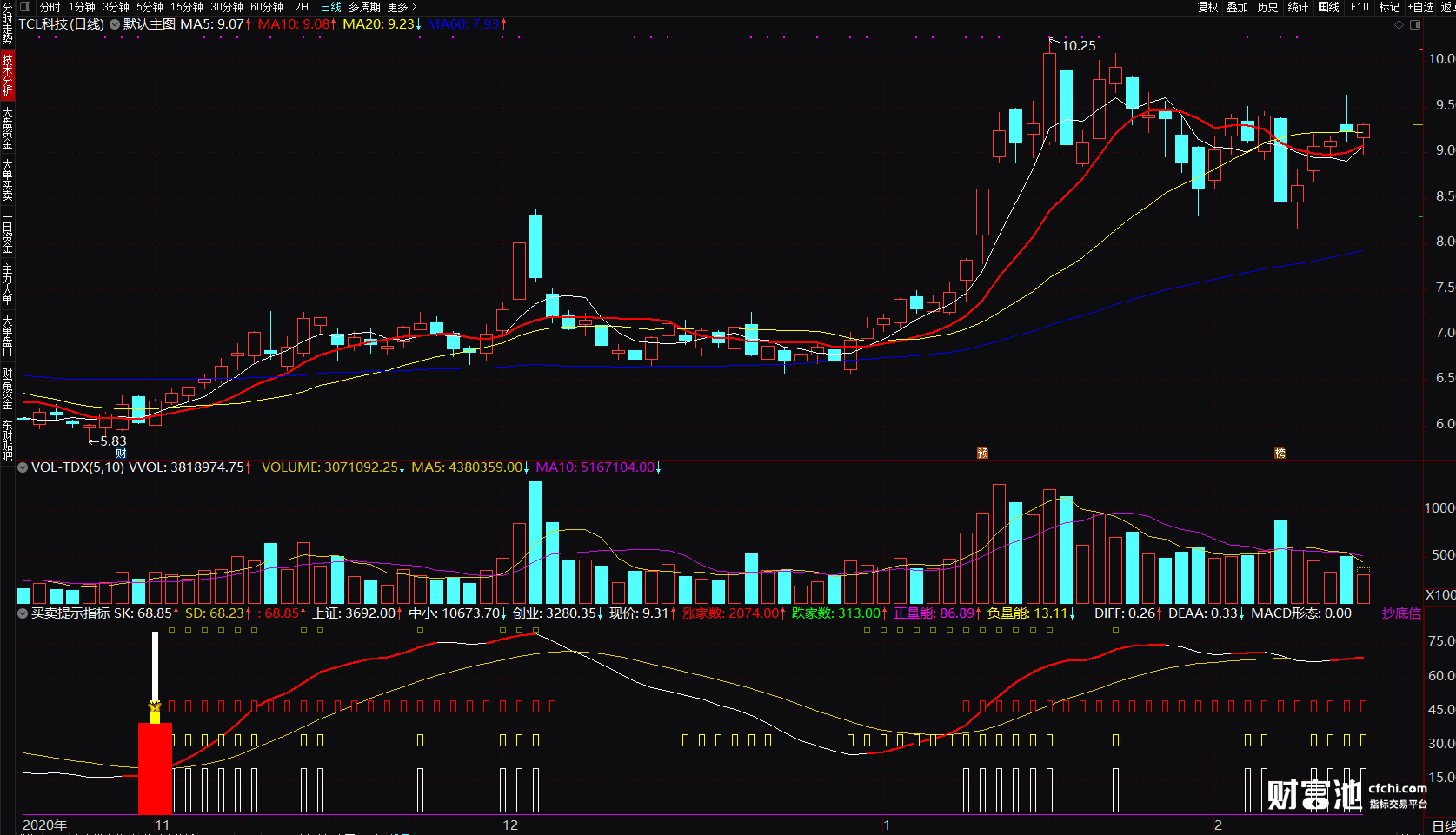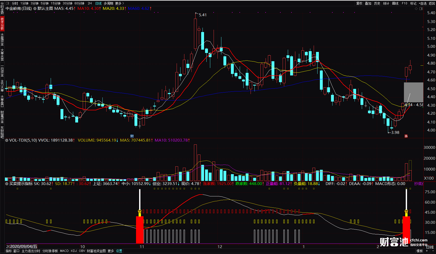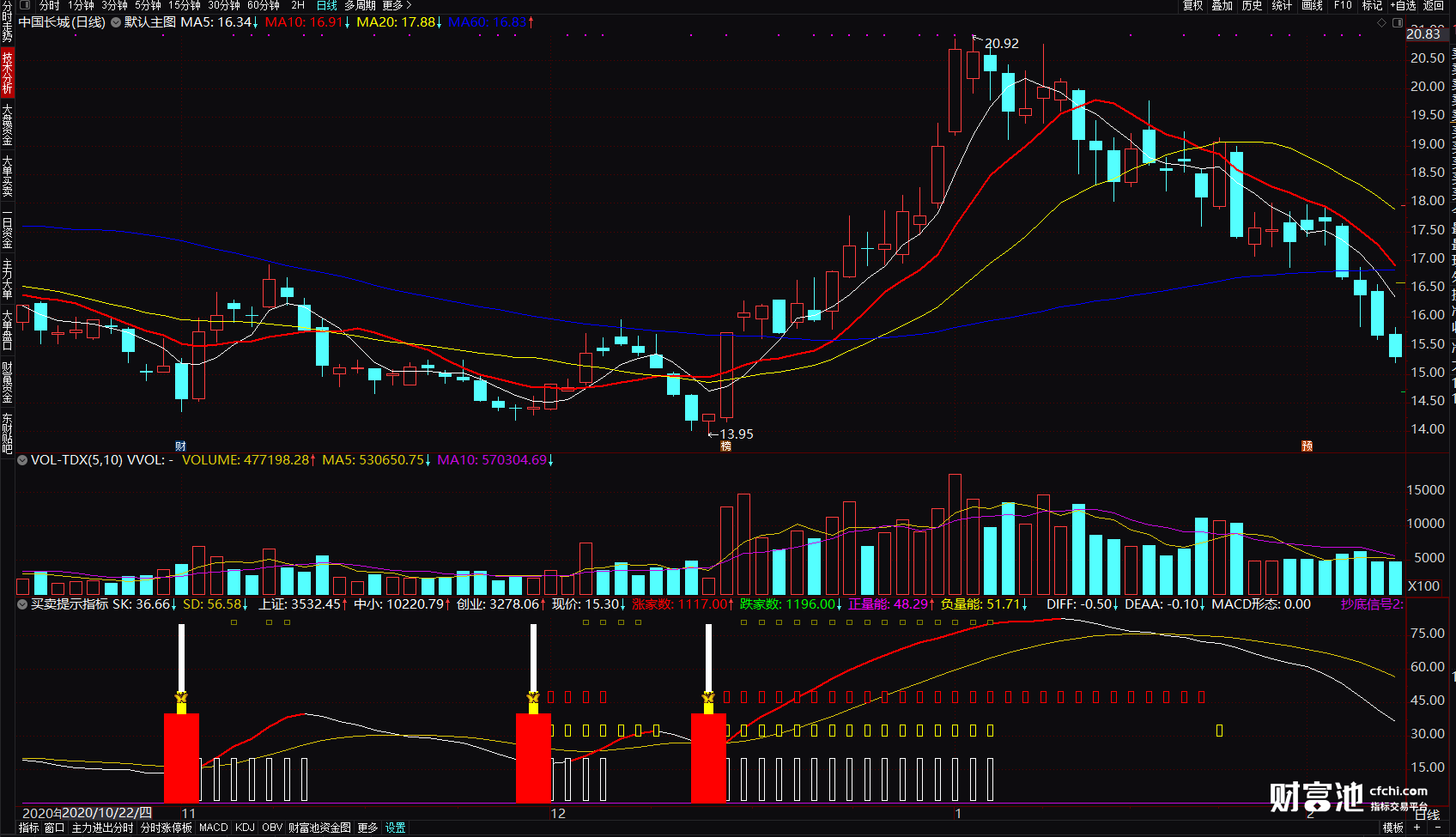 卖点:当白色线段出现预示将会是空方趋势,注意控制仓位!