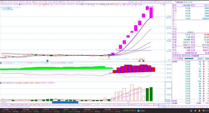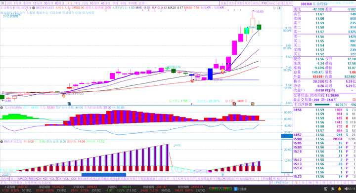 如上图,组合操盘指标,主图-翻倍密码波段指标(翻倍密码系统均线版),主要跟踪波段或趋势买点以及多头行情跟踪。副图指标-飞云控盘指标,跟踪资金做多拉升阶段行情。