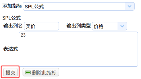 首先定义买入价格列,第一步:在添加指标下拉框中选择SPL公式,然后输出列类型选择价格,输出列名选择买价,表达式里输入23,最后点提交。