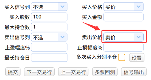 最后在卖出价格下拉框中选择卖价作为卖出价格: