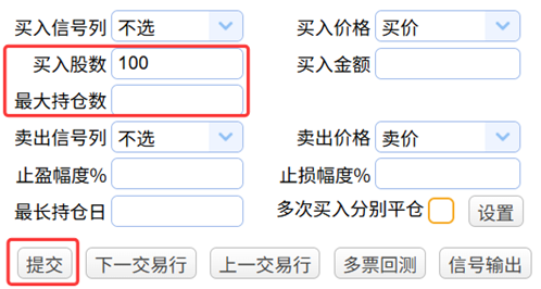 我们这里以600690为例,买入股数填100,最大持仓数为空,表示只要满足买入价格就会持续买入,最后点提交: