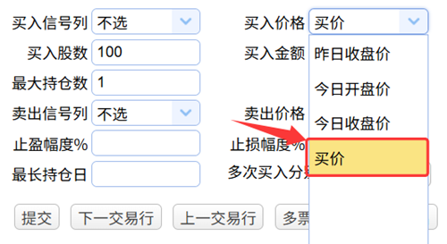 同时在买入价格下拉框中也多出了买价选项,选择买价作为买入价格: