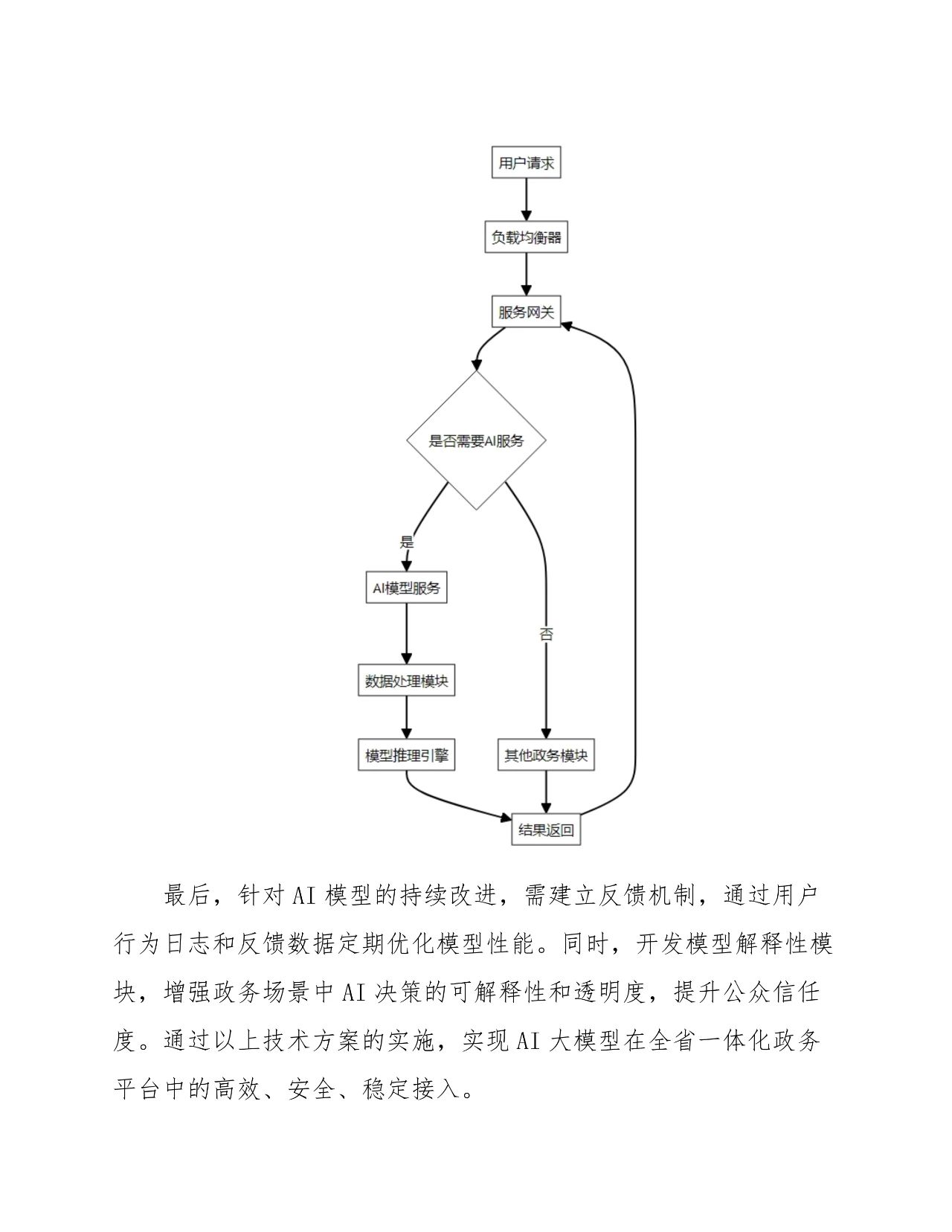 系统集成方案 :实现 AI 大模型与现有政务系统的无缝集成,确保数据交互、功能协同和性能优化。