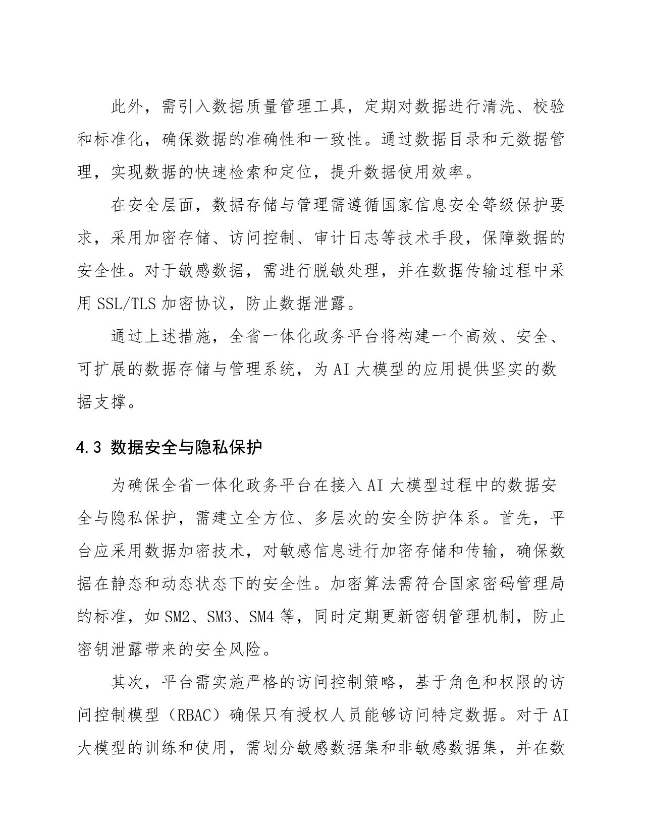 数字政府智慧政务+AI大模型接入及应用方案:技术方案设计(AI大模型选择、数据接口设计、系统集成方案)、数据管理与治理、系统功能