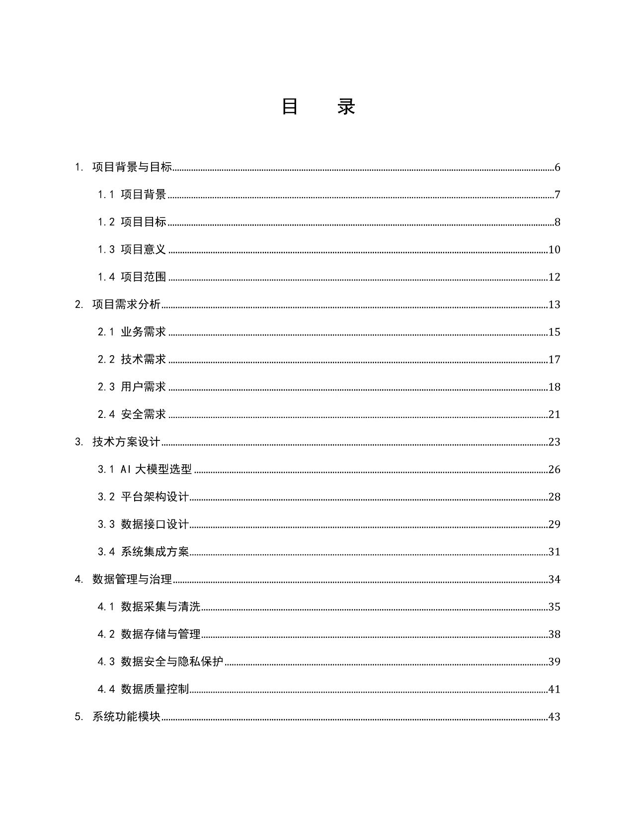 方案从项目背景与目标、范围、需求分析,到技术方案设计、数据管理与治理、系统功能模块,再到用户界面设计、系统安全、性能优化、部署与运维、培训与支持、项目进度与里程碑、预算与资源、法律与合规、项目评估与考核,以及后续规划与扩展等多个方面进行了全面而细致的阐述,提供了数字政府智慧政务与 AI 大模型深度融合的完整实施路径与执行细节。