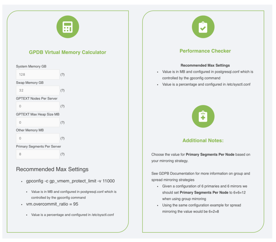 数据库初始化安装前,根据硬件规划情况,使用这个计算器工具粗略计算各个vmem protect值;后期在使用过程中,如果觉得不满足,可以再上下调整。