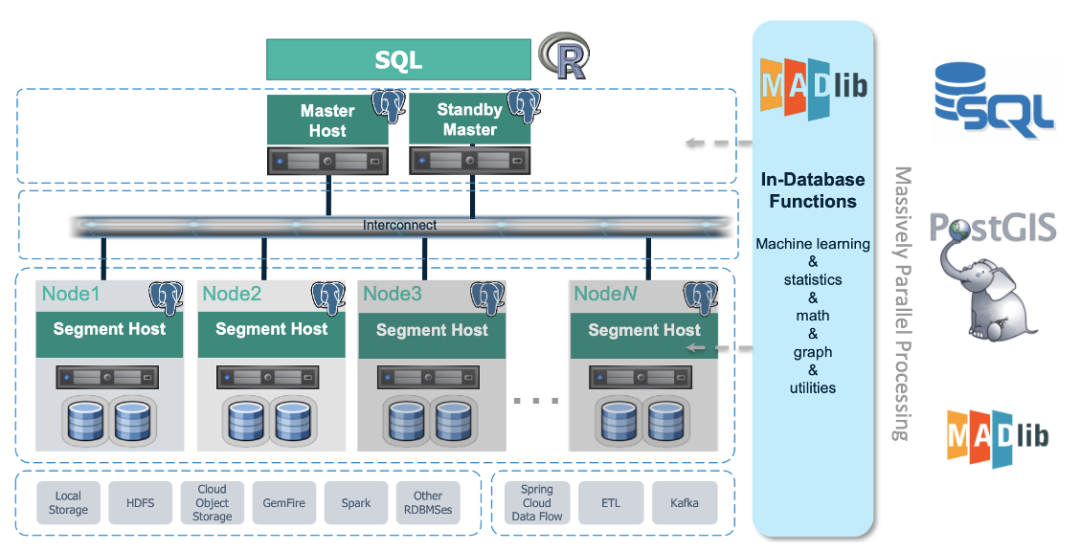 Greenplum在于外部系统对接时,例如Kafka、Spark等,数据的流入和流出均是并行的,会大大提高数据的入库和出库的效率。
