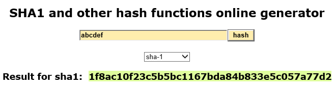 我们已经实现了SHA1这一散列算法,接下来我们验证一下它的效果如何。首先我们输入信息“abcdef”,计算结果,并使用通用工具验算。