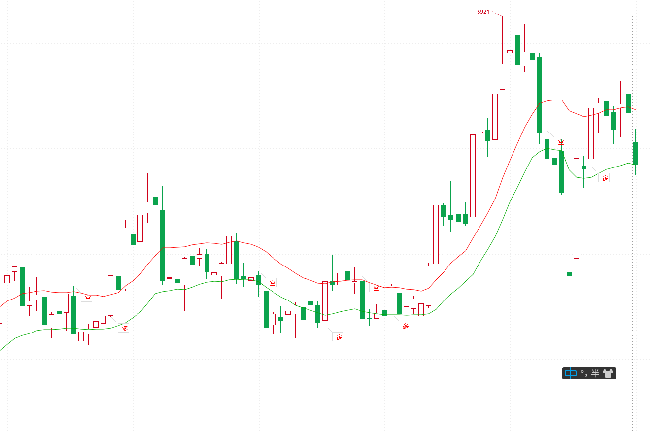 2)最新价向下穿过均线时平多、做空