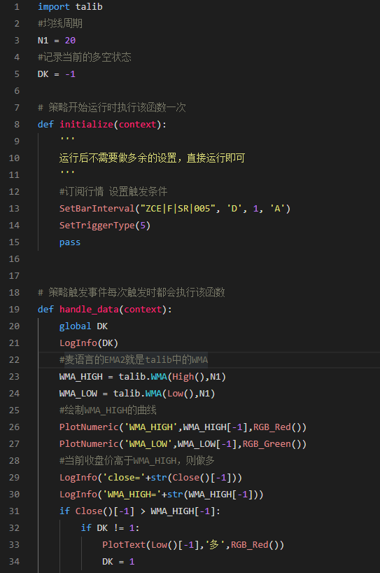 【零基础】极星量化入门三:利用WMA20均线来做开平判断