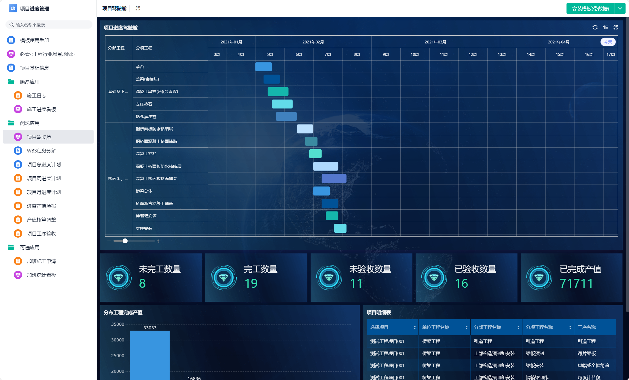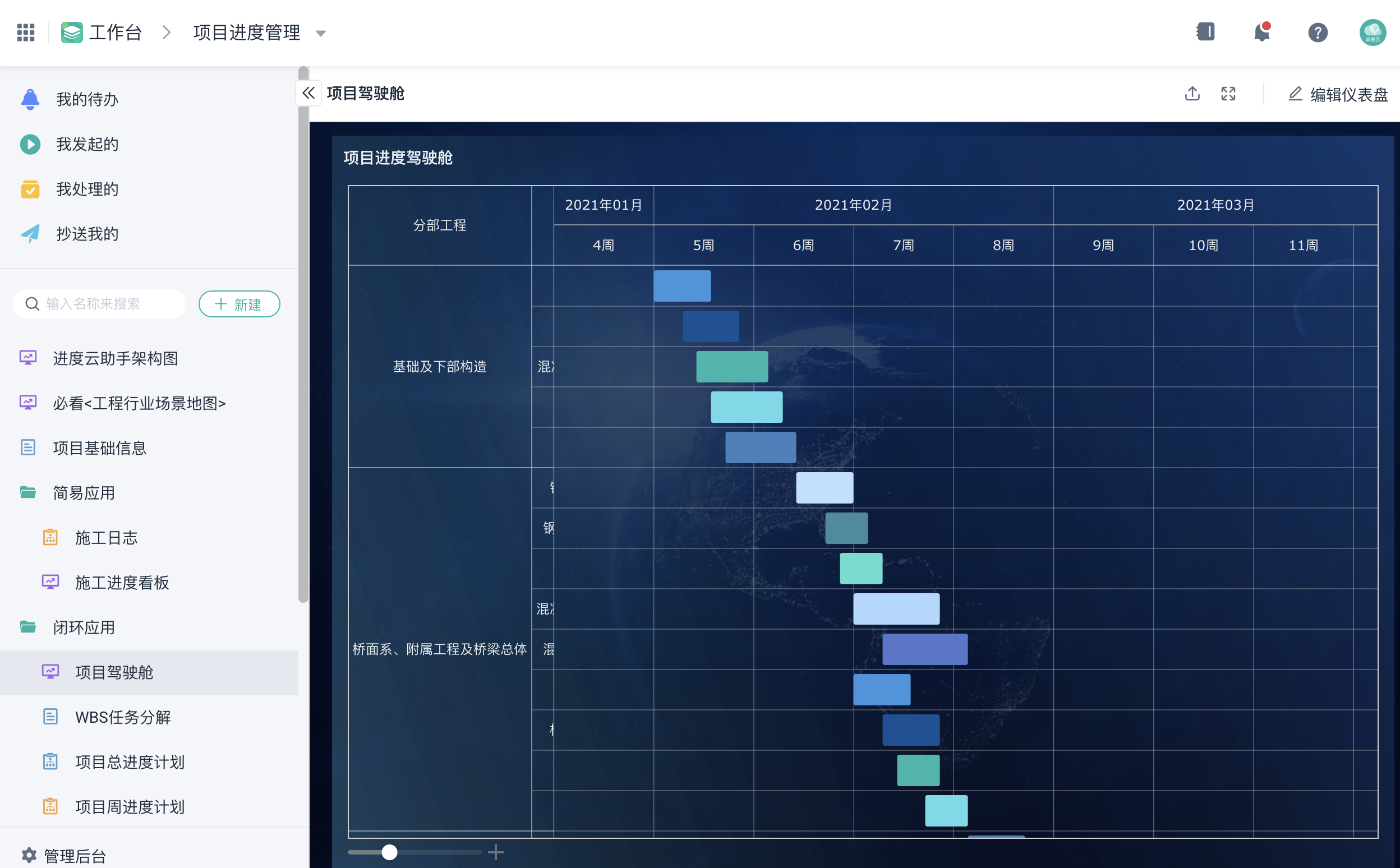 3、 项目经理实时看:总览进度、风险、成本、异常,一目了然。
