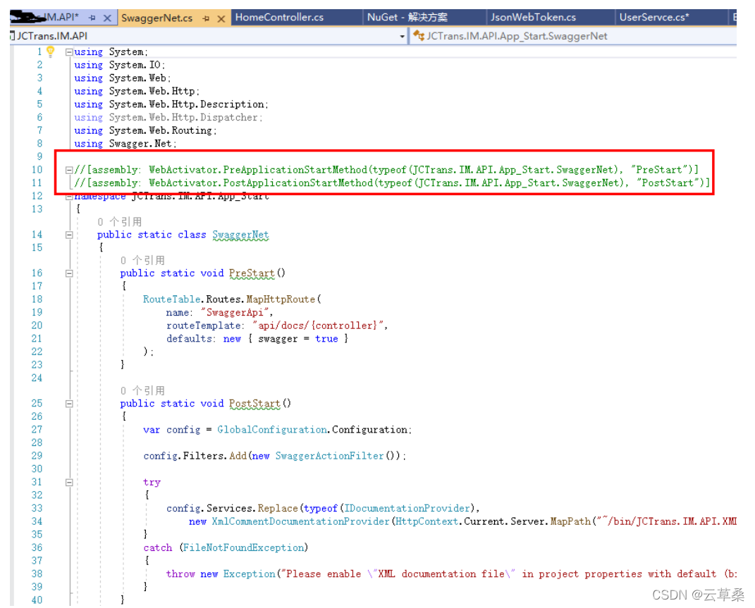 再然后在app_start中找到SwaggerNet.cs文件,注释掉这两行