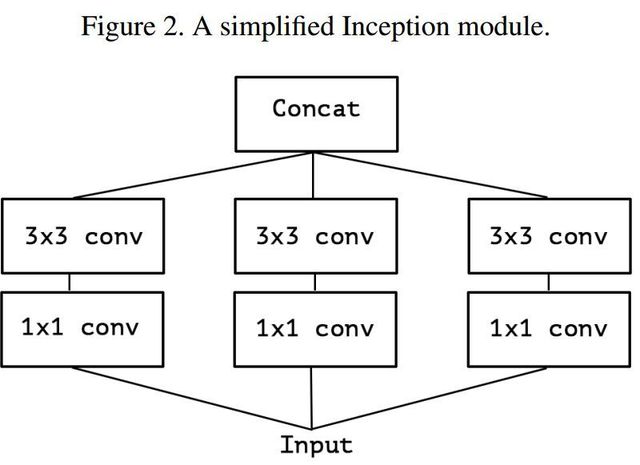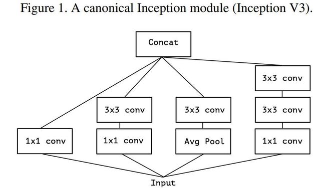 下图 1 是 Inception module,图 2 是作者简化了的 inception module(就是只保留 1*1 的那条「路」,如果带着 avg pool,后面怎么进一步假设嘛~)