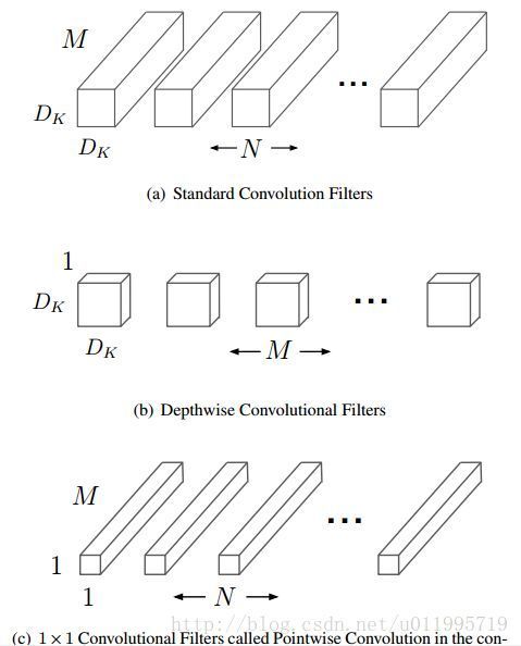对 Standard convolution 而言,是采用 N 个大小为 DK*DK 的卷积核进行操作(注意卷积核大小是 DK*DK, DK*DK*M 是具体运算时一个卷积核的大小!)