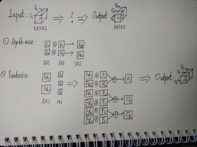 第一步 Depth-wise convolution, 即逐通道的卷积,一个卷积核负责一个通道,一个通道只被一个卷积核「滤波」;第二步,Pointwise convolution,将 depth-wise convolution 得到的 feature map 再「串」起来,注意这个「串」是很重要的。「串」作何解?为什么还需要 pointwise convolution?作者说:However it only filters input channels, it does not combine them to create new features. Soan additional layer that computes a linear combination ofthe output of depth-wise convolution via 1 × 1 convolutionis needed in order to generate these new features。从另外一个角度考虑,其实就是:输出的每一个 feature map 要包含输入层所有 feature map 的信息。然而仅采用 depth-wise convolution,是没办法做到这点,因此需要 pointwise convolution 的辅助。
