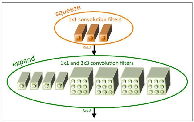 从名字——SqueezeNet 就知道,本文的新意是 squeeze,squeeze 在 SqueezeNet 中表示一个 squeeze 层,该层采用 1*1 卷积核对上一层 feature map 进行卷积,主要目的是减少 feature map 的维数(维数即通道数,就是一个立方体的 feature map,切成一片一片的,一共有几片)。