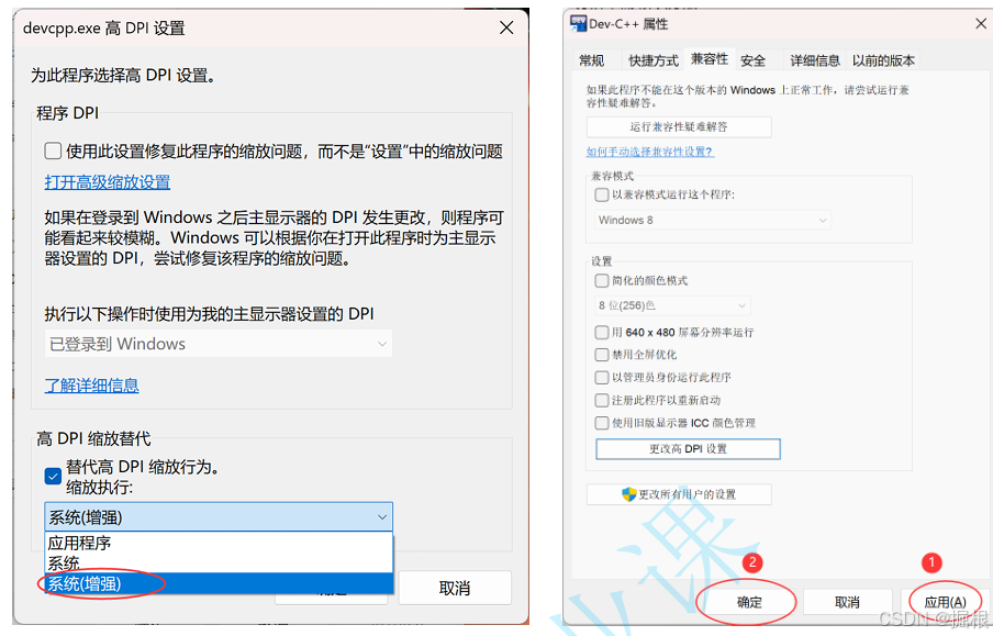 因为Dev-C++很久不再更新,⽽且版本⽐较⽼,所现在显⽰器的⾼分辨率⽀持不好,所以看起来显⽰不 够清晰。 为了解决这个问题,可以这样做:
