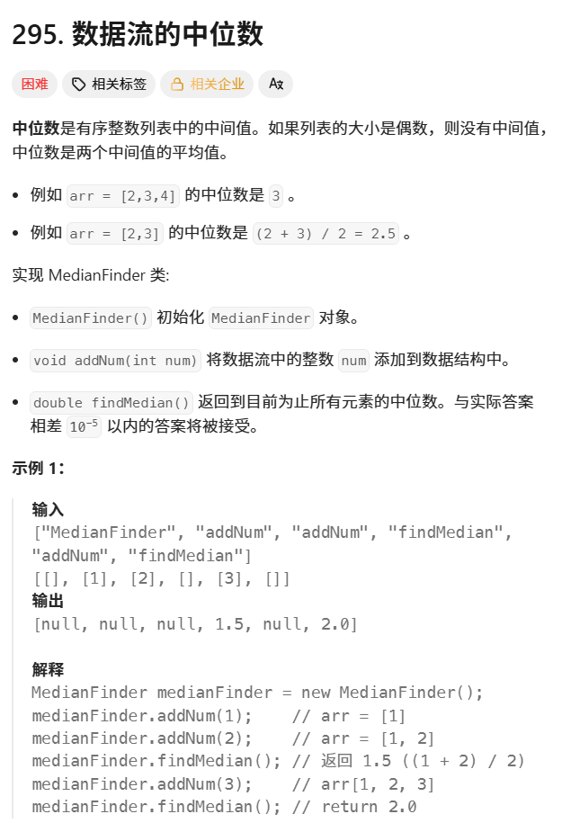 MedianFinder(数据流的中位数) |