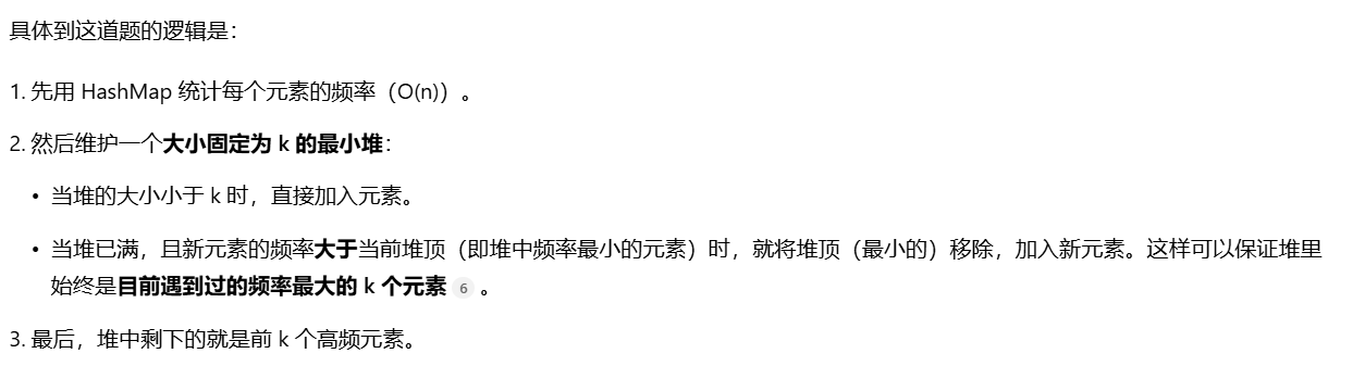 用HashMap统计频率,用大小为K的最小堆维护当前频率最高的K个元素。 |