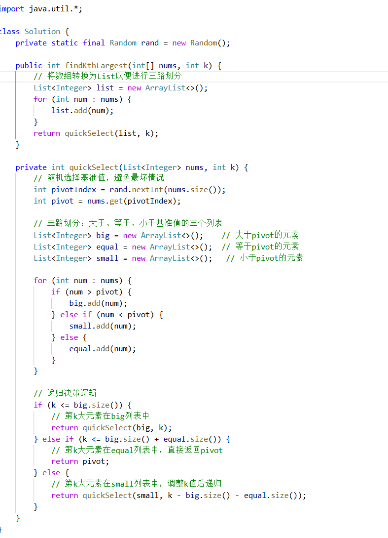 List<Integer> big = new ArrayList<>(); // 大于pivot的元素
