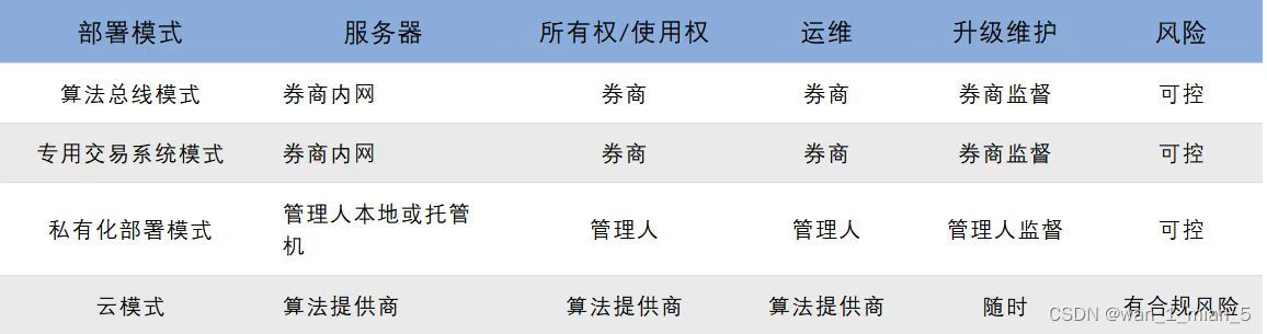 总线模式的特色就是,服务器在券商,券商使用,可挂载多个算法提供商的算法,调用起来比较方便;安全、可控,交易算法提供商不感知客户信息。