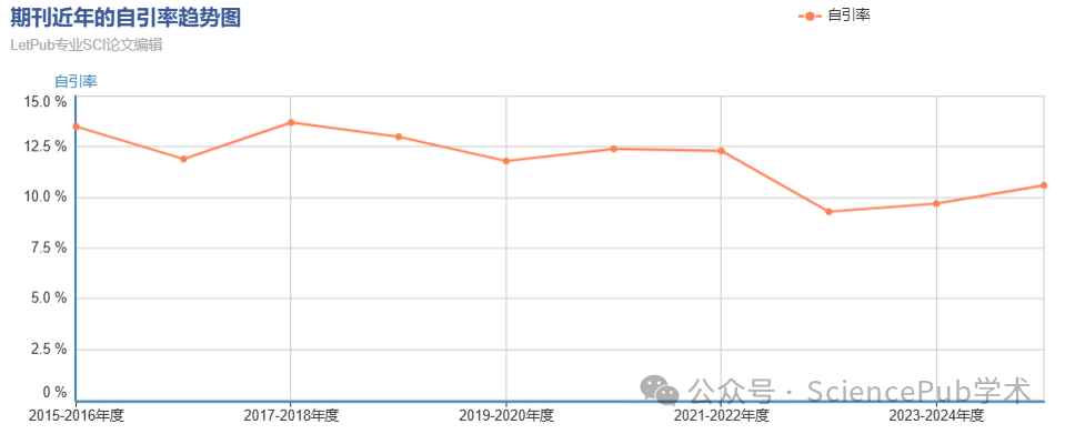 期刊自引率近几年基本保持在10%-15%之间,最新自引率为10.6%,低于安全阀值