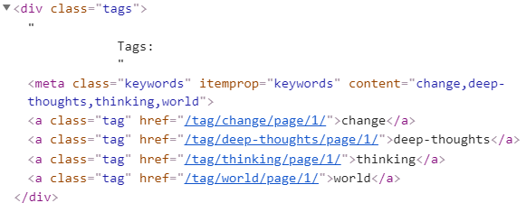 - 这个页面结构十分简单,内容主体由 quote 组成,以卡片式展示;页面右边展示的是10个常用标签子页面的url,暂时不用管它