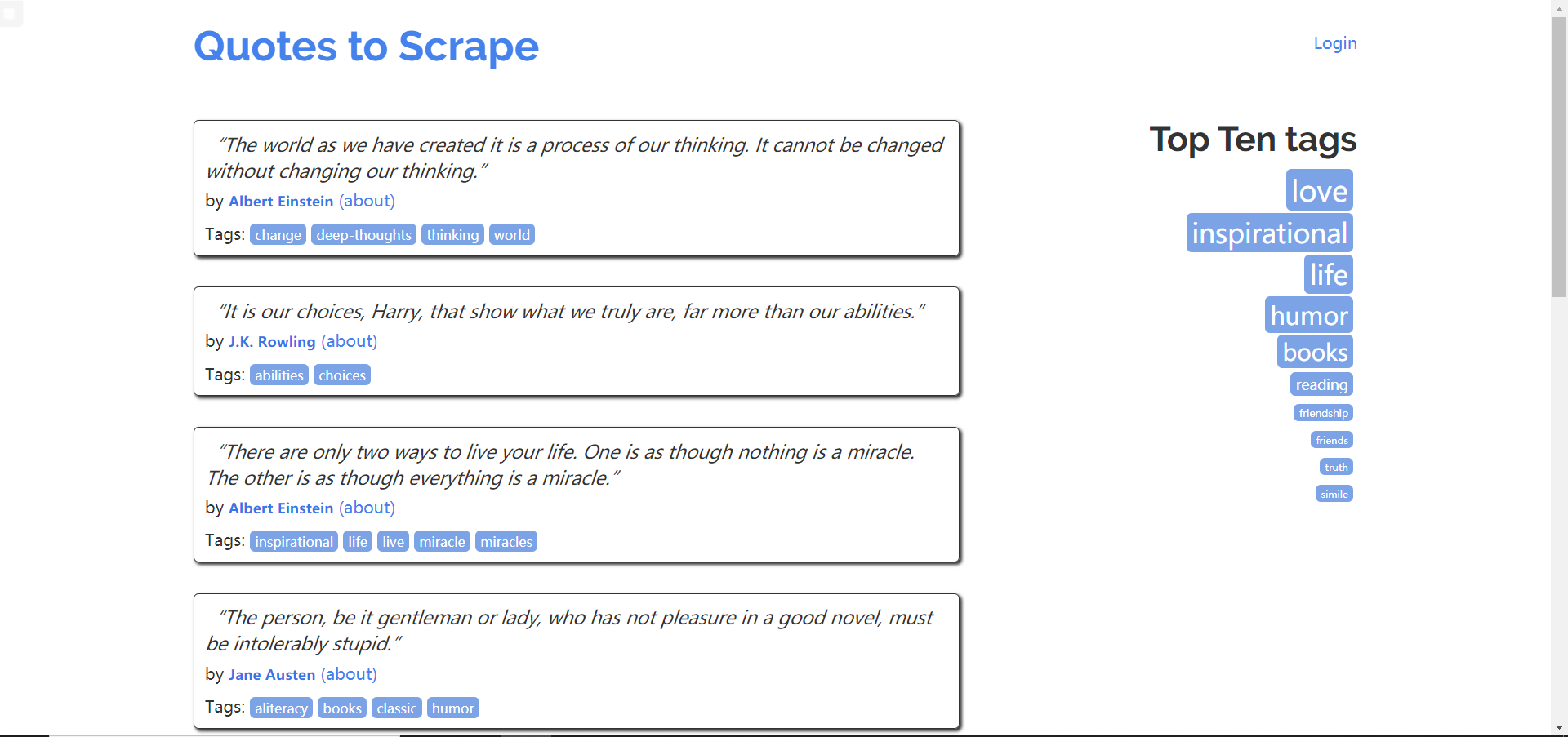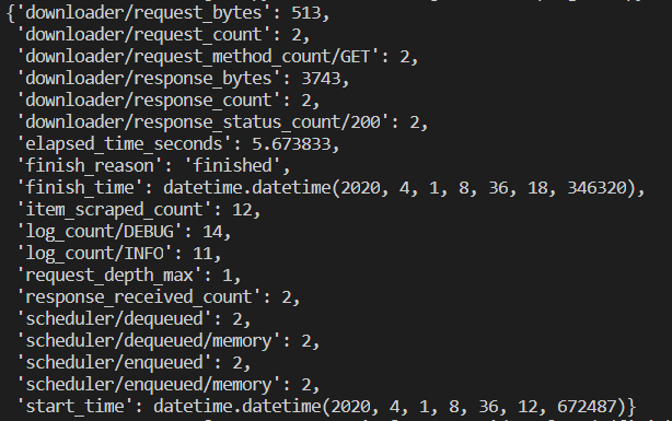 2020-04-03 12:32:17 [scrapy.core.scraper] DEBUG: Scraped from <200 http://quotes.toscrape.com/page/1/>