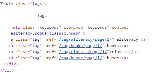 官方文档中提供的代码爬取的就是这个网站的子页面 Viewing tag: humor,其url为http://quotes.toscrape.com/tag/humor/,页面结构还是我上面所说的